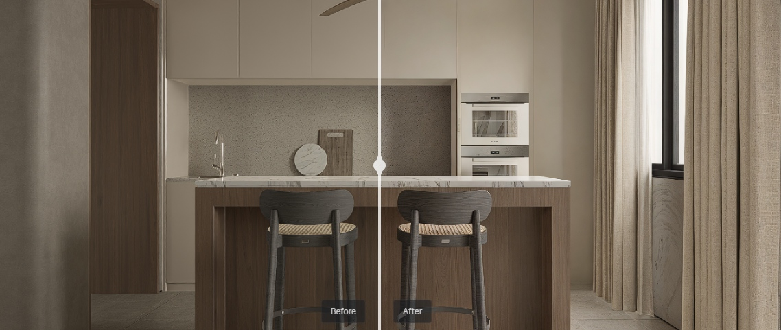 Interieurprojecten vragen om sterke visuele storytelling. Klanten willen niet enkel plannen zien, maar ruimtes voelen. Als je klant zich meteen thuis voelt in jouw ontwerp, is je missie geslaagd. Fotorealisme is daarbij een belangrijke troef. Gelukkig blinkt D5 Render uit in: