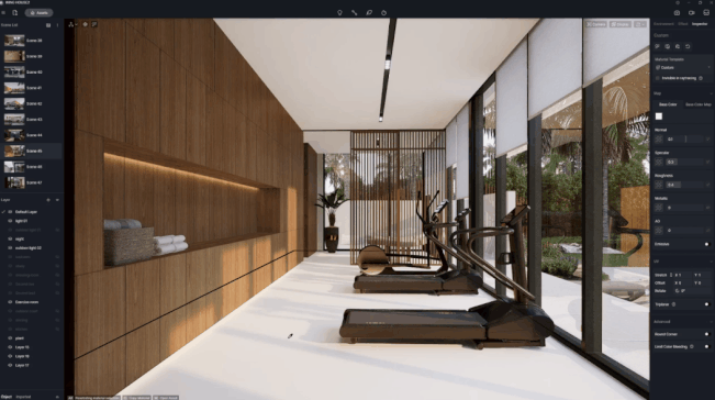 Een van de grootste voordelen van D5 Render is realtime rendering. Terwijl je ontwerpt, zie je meteen het eindresultaat. Je hoeft dus niet te wachten tot je render klaar is en je krijgt meteen feedback op licht, materialen en compositie. Zo kan je sneller itereren tijdens klantbesprekingen.
